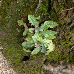 这一变种与原变种不同在于植株较粗壮,高13-23厘米;茎基部叶常作莲座状,卵状长圆形,上部的叶及苞叶常为宽卵形或几圆形,边缘具粗锯齿;花长达18毫米。