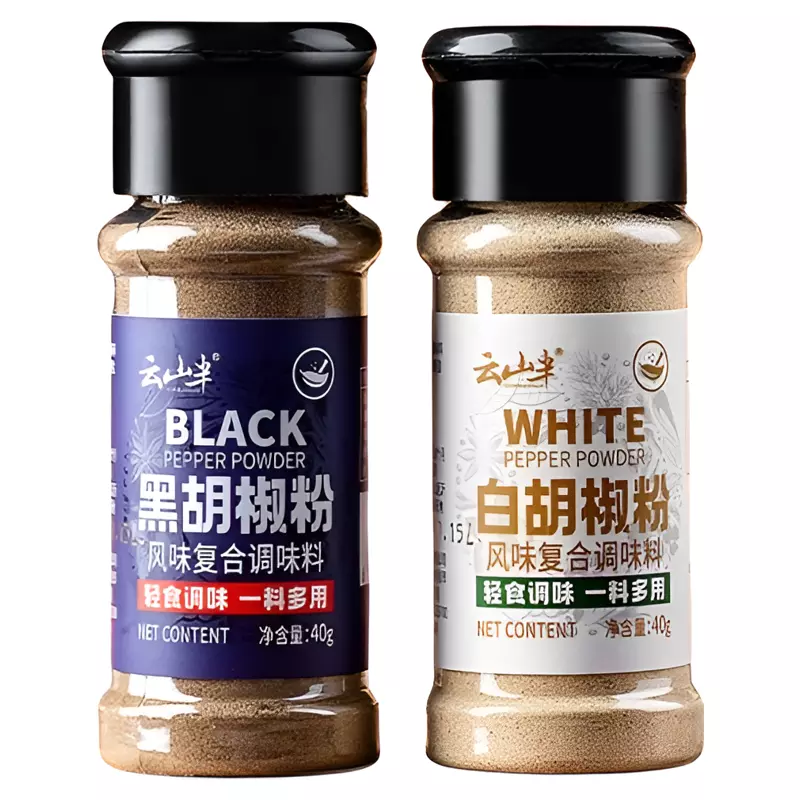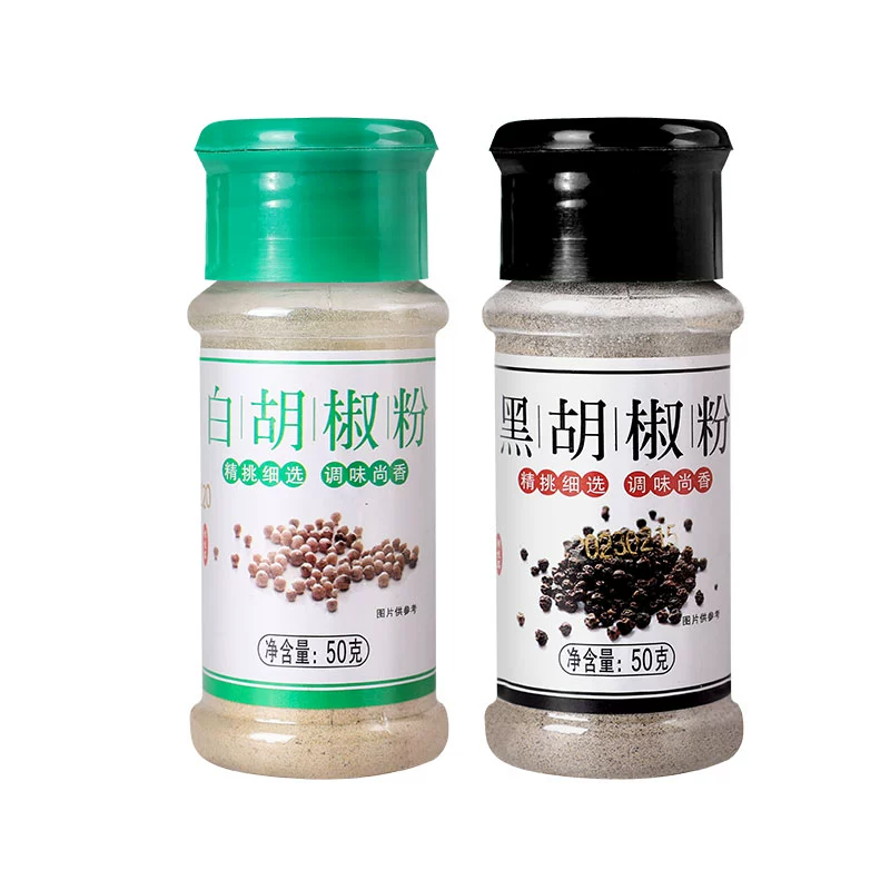 胡椒粉分白胡椒粉和黑胡椒粉两种,白胡椒粉为成熟的果实脱去果皮的种子加工而成,色灰白,种仁饱满,气味较浓,品质较好;黑胡椒粉是未成熟而晒干的实加工而成,果皮皱而黑,气味较淡。两者性情也不同。专家说,黑胡椒粉走里,味重,调味作用稍好;白胡椒粉药用价值更高,走表,辛散作用更好。