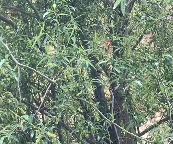 与旱柳相似,不同为枝褐绿色,较粗,质脆易折,叶片较大。