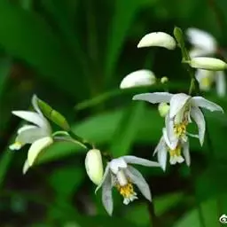 黄花白及:草本植物,植株高25-55厘米。假鳞茎扁斜卵形,较大,上面具荸荠似的环带,富粘性。茎较粗壮,…