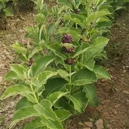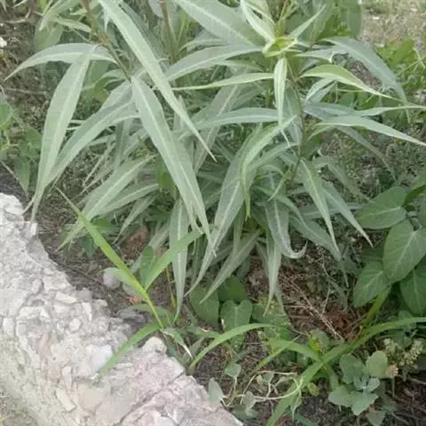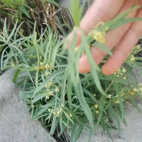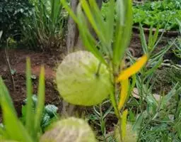 灌木 状草本。株高约2米。茎直立,灰绿色,具白毛。叶片线形或长披针形,似柳叶。花腋生,花白色。果黄色,圆锥形,果面有刺突,中空。果实很薄,肿胀呈球形,用手轻轻挤压,似有空气溢出,极像小气球,观果期长.