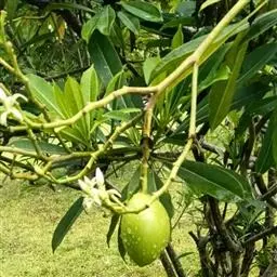 海杧果是夹竹桃科海杧果属的乔木。高4~8米;树皮为灰褐色;全株有丰富乳汁;叶厚纸质,…