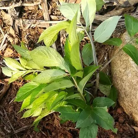 接骨草果实 用扦插繁殖:采用育苗移栽法。在2月发芽区,选取生长良好,无病虫害的枝条,剪成20-25厘米长的插条,每个留有3个以上的芽节,最上面和最下面的芽节要距剪口1-1.5厘米,然后在整理好的地上,开3米宽的畦,按行距26厘米开横沟,深16-20厘米,每沟放插条15-20根,插条的最上一个芽节要露出地面,然后覆土半沟、压紧,在盖细土与畦面齐平。移栽应在当年冬季落叶后或明年春季发芽前进行。按行株距各1.3-1.8米开穴,深21-25厘米,每穴移苗1株,填土压紧,在盖土使稍高于地面。