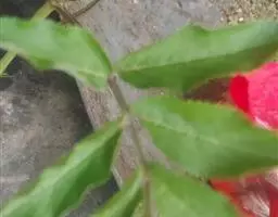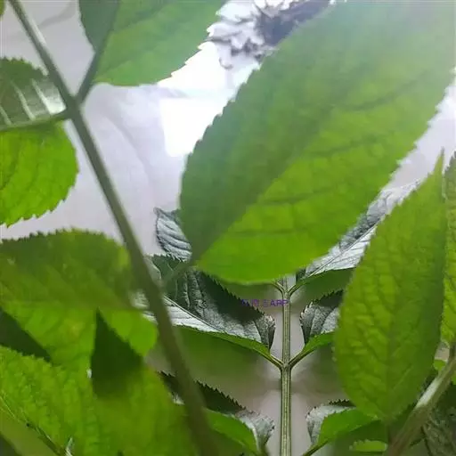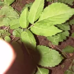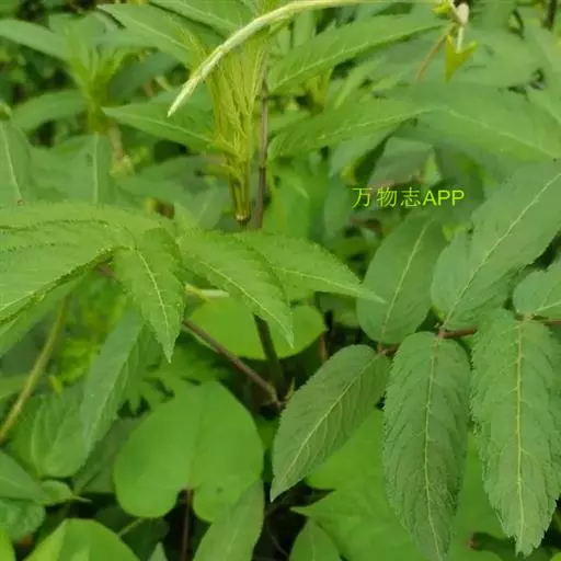 羽状复叶的托叶叶状或有时退化成蓝色的腺体;小叶2-3对,互生或对生,狭卵形,长6-13厘米,宽2-3厘米,嫩时上面被疏长柔毛,先端长渐尖,基部钝圆,两侧不等,边缘具细锯齿,近基部或中部以下边缘常有1或数枚腺齿;顶生小叶卵形或倒卵形,基部楔形,有时与第一对小叶相连,小叶无托叶,基部一对小叶有时有短柄。