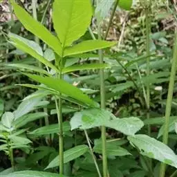 接骨草(学名:Sambucus chinensis Lindl.)是忍冬科,接骨木属高大草本或半灌木,高可达2米;茎有棱条,羽状复叶的托叶叶状或有时退化成蓝色的腺体;小叶片互生或对生,狭卵形,先端长渐尖,基部钝圆,两侧不等,边缘具细锯齿,无托叶,复伞形花序顶生,大而疏散,总花梗基部托以叶状总苞片,纤细,可孕性花小;萼筒杯状,萼齿三角形;花冠白色,花药黄色或紫色;果实红色,近圆形,表面有小疣状突起。4-5月开花,8-9月结果。