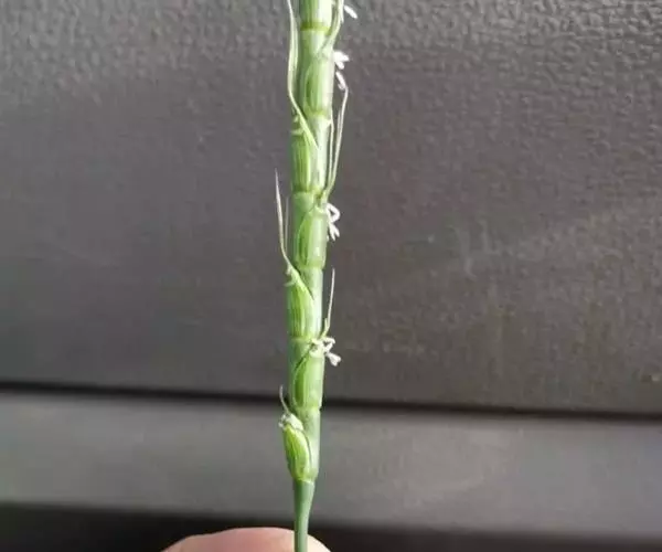 节节麦为禾本科杂草,幼苗暗绿色,基部淡紫红色,新叶抽出时卷为筒状,叶片呈条形;成株期茎秆较细弱,比一般小麦叶鞘紧抱茎,叶面密生绒毛。抽穗后比正常小麦高,穗为圆柱状,穗轴每节只生一个小穗,穗轴顶端有1-4厘米的长芒。