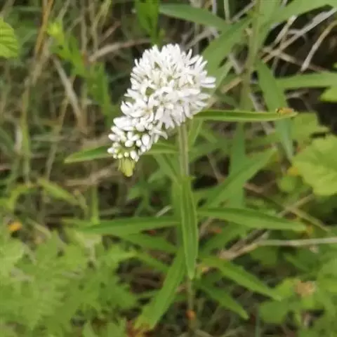 草本。根状茎横走,茎直立,圆柱形,基部紫红色。叶互生,无柄,披针形。总状花序顶生,花冠白色。