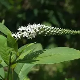 多年生草本,全株无毛。根状茎横走,紫红色。茎直立,高30-70cm,圆柱形,有黑色腺点,基部紫红色,通常不分枝,嫩梢和花序轴具褐色腺体。叶互生,近于无柄,叶片长圆状披针形至狭椭圆形,长4-11cm,宽1-2.5cm,先端渐尖或短渐尖,基部渐狭,两面均有黑色腺点,干后成粒状突起。总状花序顶生,细瘦,长10-20cm;苞片披针形,长2-3mm;花梗与苞片近等长或稍短;花萼长约1.5mm,分裂近达基部,裂片卵状椭圆形,先端钝,周边膜质,有腺状缘毛,背面有黑色腺点;花冠白色,长约3mm,基部合生部分长约1.5mm,裂片椭圆形或卵状椭圆形,先端圆钝,有黑色腺点;雄蕊比花冠短,花丝贴生于花冠裂片的下部,分离部分长约1mm;花药卵圆形,长约0.5mm;花粉粒具3孔沟,长球形[(22-24) ×(15-16)μm],表面近于平滑;子房卵圆形,花柱粗短,长约1mm。蒴果球形,直径约2-2.5mm。花期6-8月;果期8-11月。