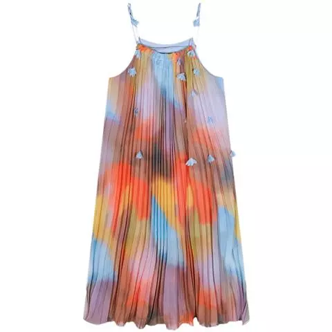 印花吊带裙