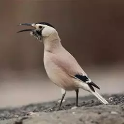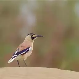 黑尾地鸦:体羽沙褐色,额、头顶以至后颈呈发金属紫蓝辉的黑色。头侧乳黄色。整个背面,包括两肩葡萄褐色。…