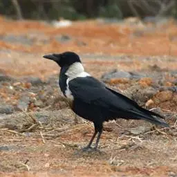 白颈鸦:除颈背和胸有一白圈外,其余体羽全黑。 成鸟的后头、翕的上部延伸至上胸白色,这些白羽基部灰色,…