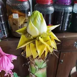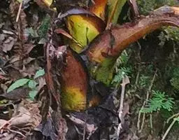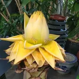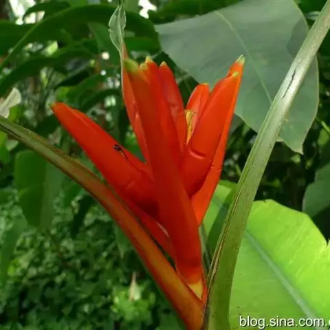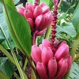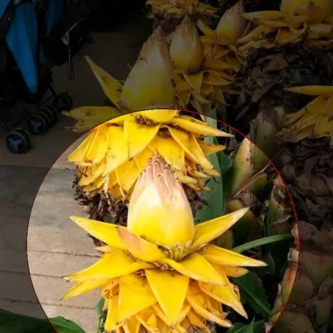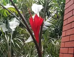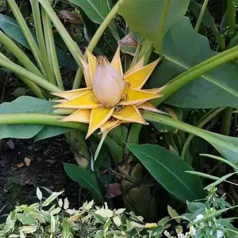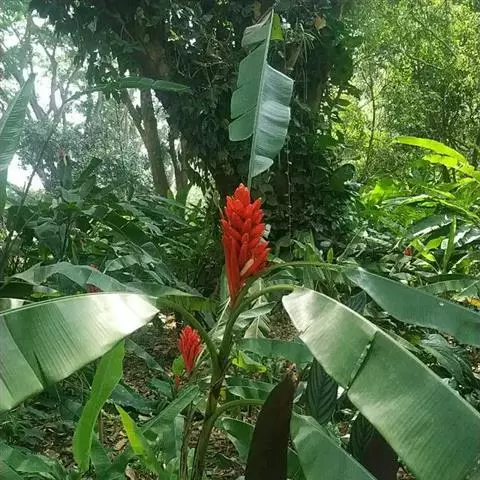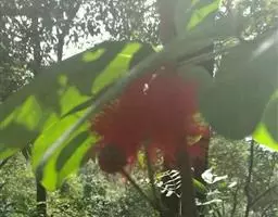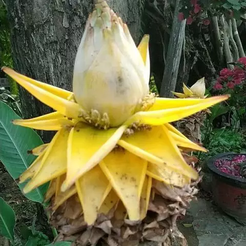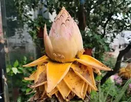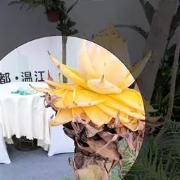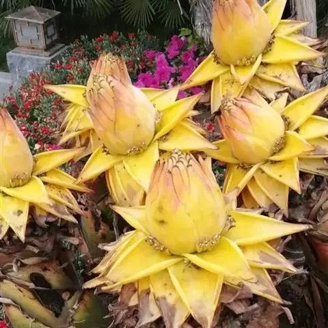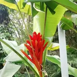 紫苞芭蕉形如一枝亭亭玉立、含苞待放的荷花,但却开在高高的芭蕉树上,这就是紫苞芭蕉。