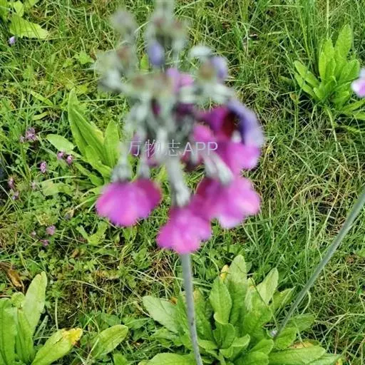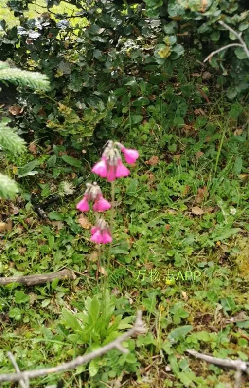 偏花报春(学名:Primula secundiflora Franch.):报春花科,报春花属多年生草本植物,根状茎粗短,叶通常多枚丛生;叶片矩圆形、狭椭圆形或倒披针形,先端钝圆,基部渐狭窄,边缘三角形小牙齿,两面均疏被小腺体,叶柄甚短或有时与叶片近等长,花葶高可达90厘米,伞形花序,有5-10朵花,苞片披针形,花萼窄钟状,染紫色,花冠红紫色至深玫瑰红色,裂片倒卵状矩圆形;蒴果稍长于宿存花萼。6-7月开花,8-9月结果。