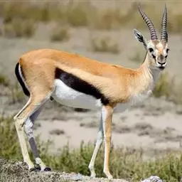 阿拉伯沙瞪羚:是偶蹄目、牛科、瞪羚属的食草动物。头尾长97厘米,身高约55-60厘米。…
