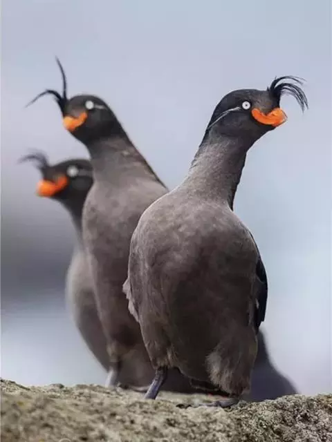 凤头海雀:是鸟纲、鸻形目、海雀科的一种海鸟。体重211-322克,体长18-20厘米。前趾间有蹼膜,…