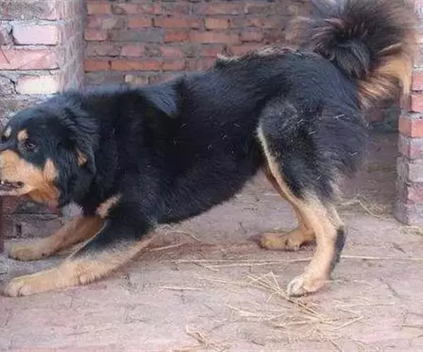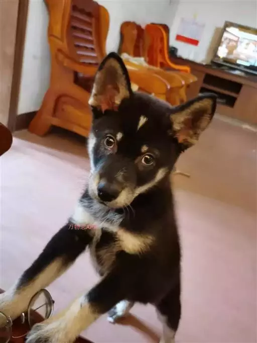 体态特征: 竖立的尖耳鼻梁直,呈黑色口鼻部短而厚,又直又粗,中等长度的外层毛,浓密的尾,长度中等,前腿非常强壮,肌肉有力