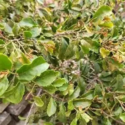 灌木,高0.5-1米;嫩枝、叶密被褐色或红褐色星状毛,有时具散生叠生星状毛,小枝黑色,无毛,具散生皮孔。叶近对生或互生,革质,卵形、长卵形或椭圆形,长5-8厘米,宽3-4.5厘米,顶端圆钝,基部近圆形,上面无毛,下面被绒毛;侧脉4-5对,在叶上面明显;叶柄长6-12毫米,无毛。