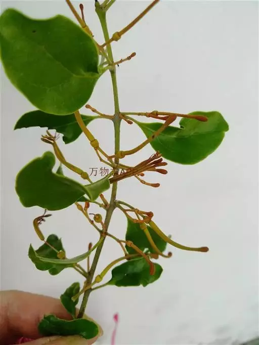 桑寄生(学名:Taxillus sutchuenensis (Lecomte) Danser),别称桃树寄生,苦楝寄生等。嫩枝、叶密被褐色或红褐色星状毛,有时具散生叠生星状毛,小枝黑色,无毛,具散生皮孔。产于云南、四川、甘肃、陕西、山西、河南、贵州、湖北、湖南等地。有祛风湿,益肝肾,强筋骨,安胎的功效。