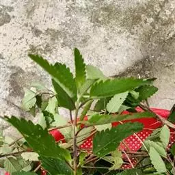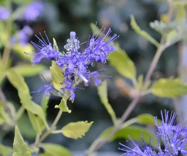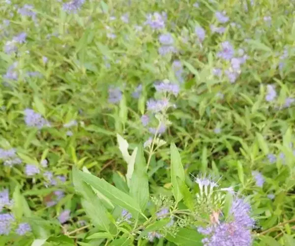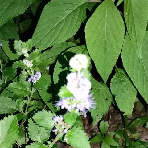 1、莸:叶广卵圆形,基部阔楔形或近截形,每边有3-5枚粗圆齿,叶柄较短(1-1.5分)。