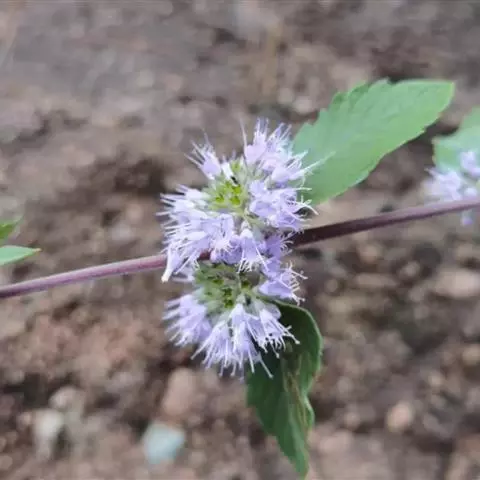 多年生草本,有时蔓生,仅基部木质化,高30-60厘米;茎方形,被向下弯曲的柔毛。叶片纸质,宽卵形至近圆形,长1.5-5厘米,宽1.5-4厘米,顶端钝,基部阔楔形至圆形,边缘具4-6对钝齿,两面均被柔毛及腺点,侧脉3-5对;叶柄长0.3-1厘米,被柔毛。单花腋生,有长1.5-3厘米的纤细花柄,近花柄中部生两枚锥形细小苞片;花萼杯状,长约6毫米,结果时略增大,两面均被柔毛和疏生腺点,5裂,裂片卵圆形至卵状披针形,有明显脉纹;花冠淡兰色,外面疏生细毛和腺点,喉部通常被柔毛,下唇中裂片较大,全缘,花冠管长6-9毫米;雄蕊4枚,与花柱均伸出花冠管外,子房密生绒毛。蒴果4瓣裂,果瓣倒卵形,无翅,表面被粗毛,不明显凹凸成网纹,长约4毫米,淡黄色。花果期5-9月。