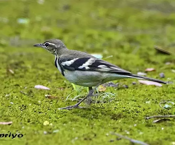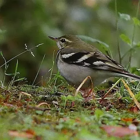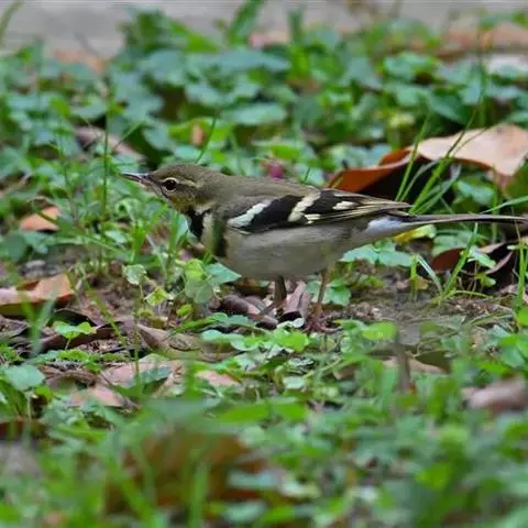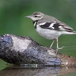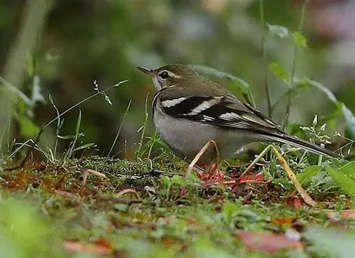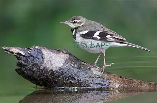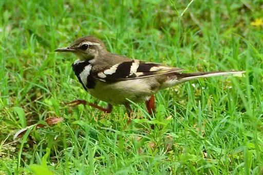 山鹡鸰(学名:Dendronanthus indicus):是中等体型的林鹡鸰,体长约17厘米,主要羽色为褐色及黑白色。头部和上体橄榄褐色,眉纹白色,从嘴基直达耳羽上方,下体白色,胸部具有两道黑色横斑纹,下面的横斑纹有时不连续。两翼黑褐色,具有2条白色翅斑。尾羽褐色,最外侧1对尾羽白色。下体白色,胸上具两道黑色的横斑纹,较下的一道横纹有时不完整。虹膜灰色;鸟喙角质褐色,下嘴较淡;脚偏粉色。