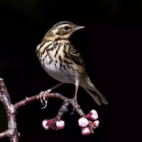树鹨是小型鸣禽,外形和林鹨相似,体长15-16厘米。上体橄榄绿色具褐色纵纹,尤以头部较明显。…
