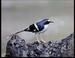 日本鹡鸰:体长约20厘米。上体多黑色,额、颏及眉纹白,下体白,两翼黑而具白色横斑及羽缘,…