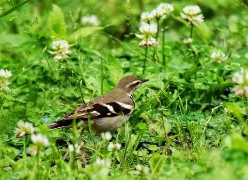 山鹡鸰:是中等体型的林鹡鸰,体长约17厘米,主要羽色为褐色及黑白色。头部和上体橄榄褐色,眉纹白色,…