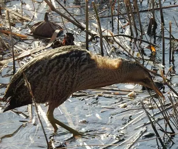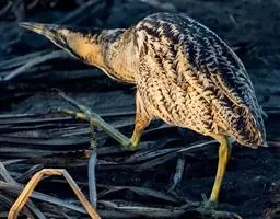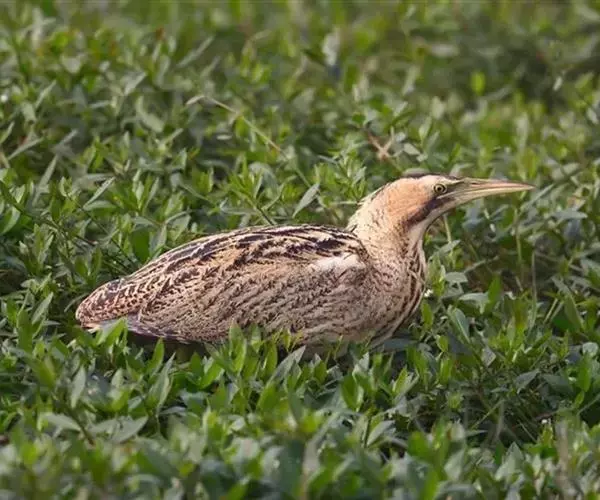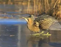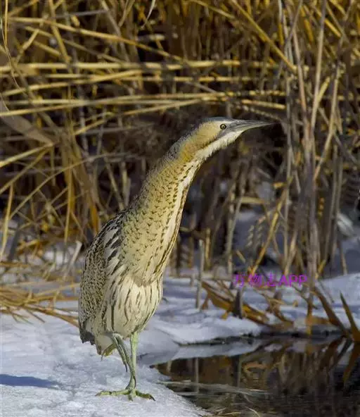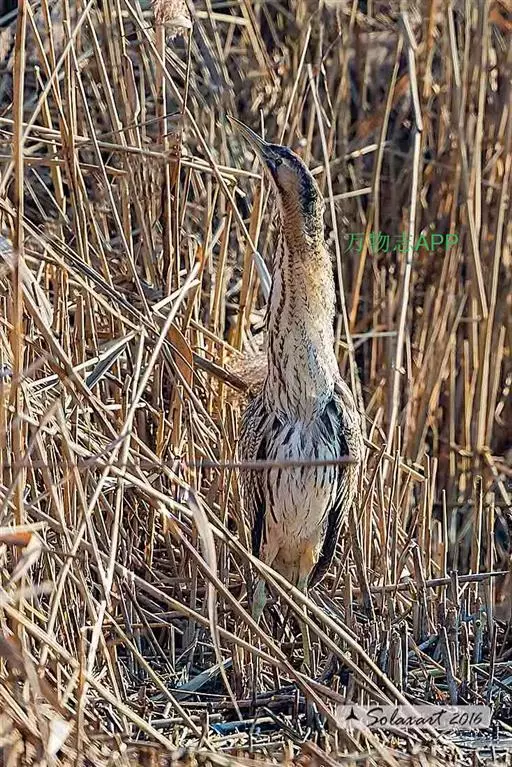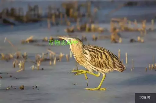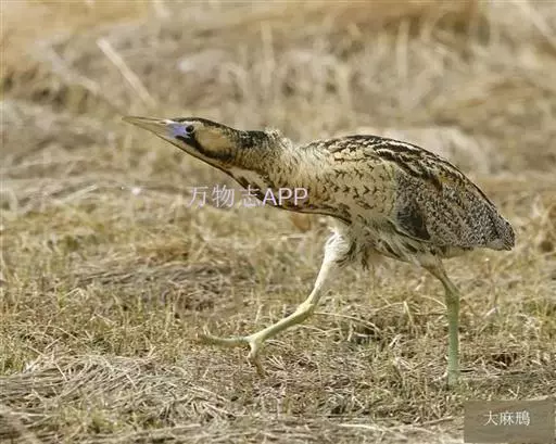 大麻鳽(学名:Botaurus stellaris)属大型鹭类,体长59-77厘米。身较粗胖,嘴粗而尖;颈、脚较粗短;头黑褐色;背黄褐色,具粗著的黑褐色斑点;下体淡黄褐色,具黑褐色粗著纵纹;嘴黄褐色;脚黄绿色。栖息于山地丘陵和山脚平原地带的河流、湖泊、池塘边的芦苇丛。除繁殖期外常单独活动,秋季迁徙季节也集成5-8只的小群。夜行性,多在黄昏和晚上活动,白天多隐蔽在水边芦苇丛和草丛中,有时亦见白天在沼泽草地上活动。主要以鱼、虾、蛙、蟹、螺、水生昆虫等动物性食物为食。分布甚广,欧洲、非洲、亚洲均有。