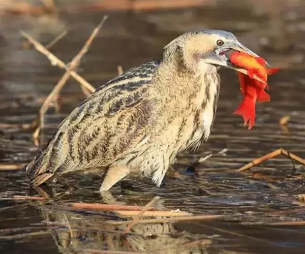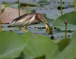 大麻鳽主要以鱼、虾、蛙、蟹、螺、水生昆虫等动物性食物为食。