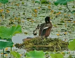 繁殖期5-7月。常成对孤立的单独营巢。通常置巢于沼泽和水边芦苇丛和草丛中,也在灌木丛中或灌木下营巢。巢的结构简单,由草茎和草叶构成,呈盘状。大小为50-90厘米,高30-50厘米。每窝产卵4-6枚,卵为橄榄褐色,呈卵圆形,大小为48-58毫米×36-41毫米,平均52毫米×38毫米。产卵期不同步,甚至在同一地区不同对之间产卵期亦不一致,最早5月初即有个别开始产卵,大量在5月中下旬,少数迟至6月初。产出第一枚卵后即开始孵卵,主要由雌鸟承担,雄鸟有时亦参与孵卵活动,孵化期25-26天。雌鸟孵卵时甚警觉,亦甚恋巢,当人走到很近时,才弃巢而逃。雏鸟晚成性,孵出后由雌雄亲鸟共同喂养, 2-3周雏鸟能行走时即离巢躲在巢附近草丛或芦苇丛中,晚上仍回巢中由亲鸟喂养,1个半月到2个月,雏鸟才能飞翔和进行独立生活。
