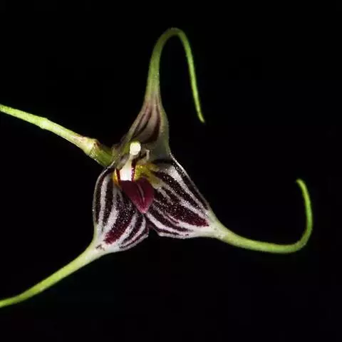 附生草本,较高大。假鳞茎稍密集,通常为圆柱形,较少近长圆形,基部常多少平卧,自下向上渐狭,上部直立,长(3-)7-18厘米,直径3-8(-12)毫米,顶端具2叶。叶线状倒披针形或线状匙形,纸质,长8-25厘米,宽1.2-3厘米,先端渐尖并有细尖,基部收狭成柄,有关节;叶柄长1-4厘米。花葶长14-30厘米,外弯;花序柄略压扁,两侧有很狭的翅,上部靠近花序下方有1-2枚不育苞片;总状花序长9-20厘米,具数十朵小花;花苞片狭披针形,薄膜质,长3-7毫米;花梗和子房长4-7毫米;花绿白色或淡绿黄色,较密集;中萼片近椭圆状长圆形,长2-3毫米,宽0.8-1毫米,先端钝,边缘外卷;侧萼片卵状椭圆形,略宽于中萼片;花瓣狭线形,长2-3毫米,宽约0.3毫米,先端浑圆;唇瓣近卵状长圆形,长2-3毫米,宽约1.7毫米,先端近急尖或具短尖头,边缘略呈波状,从中部向外弯,无胼胝体;蕊柱长1.5-2毫米,稍向前弯曲,顶端有翅,基部略扩大。蒴果倒卵状椭圆形,长4-6毫米,宽3-4毫米;果梗长3-6毫米。花期9-12月,果期次年1-4月。