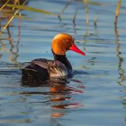 赤嘴潜鸭俗称大红头,是大型鸭类,个体比绿头鸭小,体长45-55厘米,体重1千克左右。雄鸟头浓栗色,…
