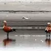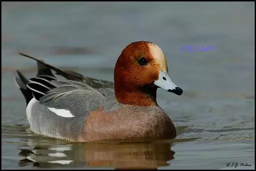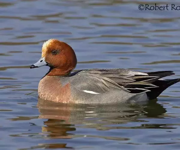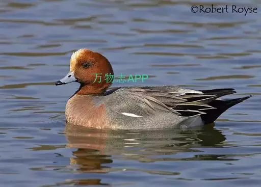 赤颈鸭(学名:Anas penelope)属中型鸭类,个体较家鸭小,和罗纹鸭大小差不多,体长41-52厘米,体重0.6千克左右。雄鸟头和颈棕红色,额至头顶有一乳黄色纵带。背和两胁灰白色,满杂以暗褐色波状细纹,翼镜翠绿色,翅上覆羽纯白色。在水中时可见体侧形成的显著白斑,飞翔时和后面的绿色翼镜形成鲜明对照,容易和其他鸭类相区别。雌鸟上体大都黑褐色,翼镜暗灰褐色,上胸棕色,其余下体白色。栖息于江河、湖泊、水塘、河口、海湾、沼泽等各类水域中。主要以植物性食物为食。常成群在水边浅水处水草丛中或沼泽地上觅食眼子菜、藻类和其他水生植物的根、茎、叶和果实。分布于欧亚大陆北部。越冬在欧洲南部、非洲东北部和西北部、埃及北部、中南半岛。偶见于格陵兰、北美、安的列斯群岛和加里曼丹。