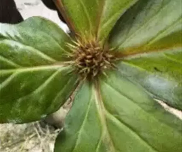 叶4-6片在茎端轮生,极少出现第二轮叶,下部叶退化呈鳞片状,叶片倒卵形以至椭圆形,长5-17厘米,宽3-10厘米,先端短渐尖,基部楔形,无柄或近于无柄,干时坚纸质,无毛,两面散生黑色腺条,有时腺条颜色不显现,仅见条状隆起,侧脉4-5对,在下面稍隆起,网脉隐蔽。