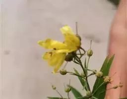 花集生茎端成伞形花序,有时亦有少数花生于近茎端的1对鳞片状叶腋;花梗长5-15毫米;花萼长8-12毫米,分裂近达基部,裂片披针形或自卵形的基部长渐尖,无毛或具稀疏缘毛,有时具稀疏黑腺条;花冠黄色,长12-14毫米,基部合生部分长约3毫米,裂片狭长圆形,宽约4.5毫米,先端钝或圆形;花丝基部合生成高2毫米的筒,分离部分长3-5毫米;花药椭圆形,长约1.5毫米;花粉粒具3孔沟,近球形 [(29.5-31.5) × (26-30)微米],表面具网状纹饰;子房无毛,花柱长约8.5毫米。