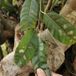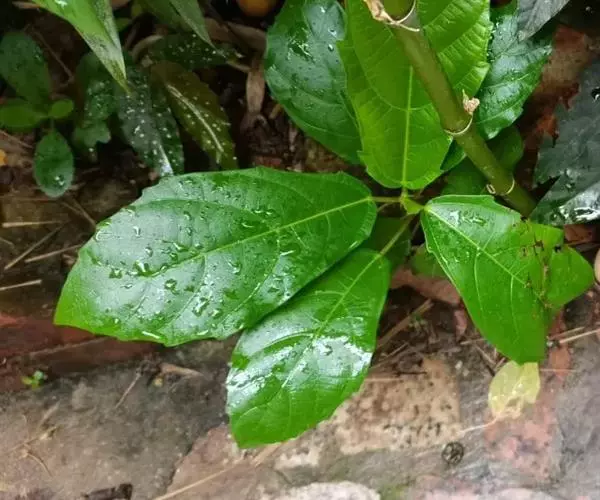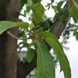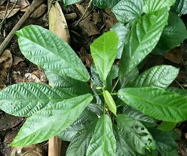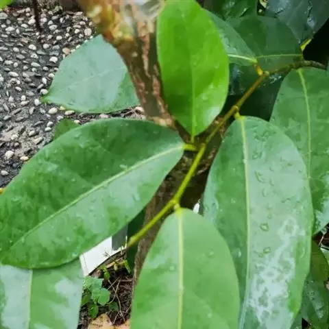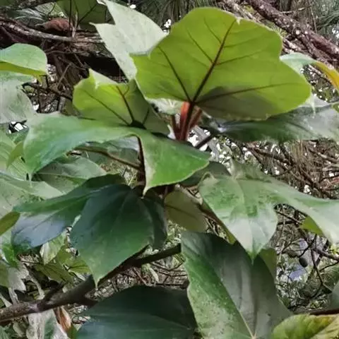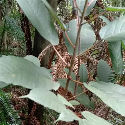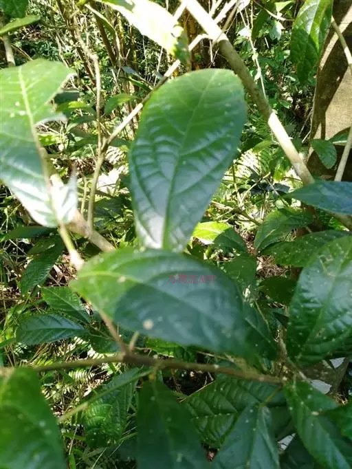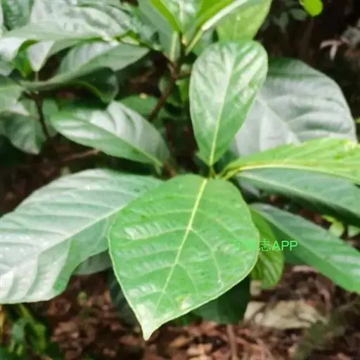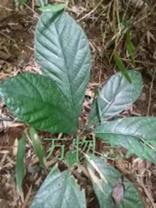 常绿小乔木,树皮黑褐色,枝粗糙,叶互生,纸质,倒卵形至长圆形,长10-20厘米,宽4-7厘米,先端具短尖,基部斜楔形或圆形,全缘或微波状,表面无毛,背面微被柔毛或黄色小突体;基生侧脉短,侧脉6-9对;叶柄长1.5-4厘米;托叶卵状披针形,长约1.7厘米。