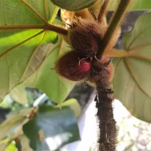 种子采集:水同木的隐花果,近球形、肉质,成熟时深红色。斗割长,成熟期不一,5-12月陆续成熟,采果时,应选择胶性能好的健壮母树。采回的果搓烂后,洗去皮肉,去掉浮在水面不实种子,再用纱布过滤,收集滤出的细小种子。如不马上播种,应将种子摊放室内,晾干收藏于干燥处。种子浅黄色,细如蚕卵,千粒重0.1克。