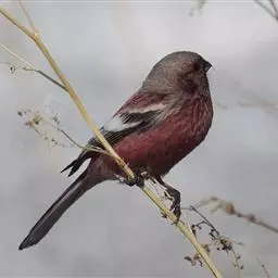 粉红腹岭雀:为燕雀科岭雀属的鸟类。体重25-34克,体长150-182毫米。是一种中等体型的深色岭雀。…