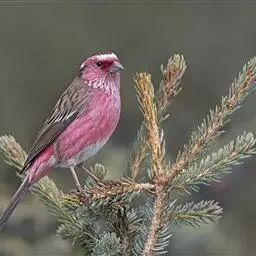 喜马拉雅白眉朱雀:小型鸟类,体长15-17厘米,体重24-35克。额基、眼先深红色,…
