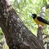雌鸟和雄鸟相似,但羽色较暗淡,头顶至后颈灰褐而具暗色纵纹。上体少金黄色而多褐色,腰淡褐而沽黄绿色。下体黄色亦较少、仅微沾黄色且亦不如雄鸟鲜艳。
