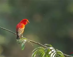 红额金翅雀:共有14个亚种。小型鸟类,体长12-14厘米。额、脸颊和颏朱红色,眼先和眼周黑色,在淡…