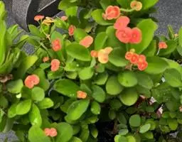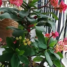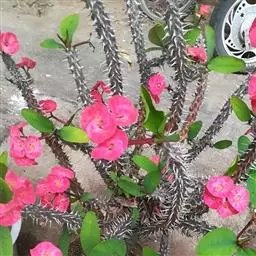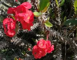 虎刺梅:别称铁海棠,是蔓生灌木植物。茎多分枝,长60-100厘米,直径5-10毫米,具纵棱,密生硬…