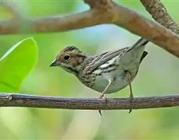 歌带鹀 林氏带鹀与稀树草鹀(Savannah Sparrow)的区别:稀树草鹀眉纹黄色,且尾部分叉。 稀树草鹀
