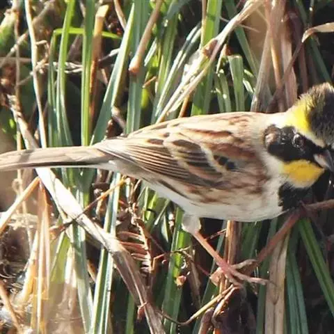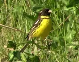 灰头鹀:属小型鸣禽。体重14-26克,体长125-161毫米。雄鸟嘴基、眼先、颊黑色,…