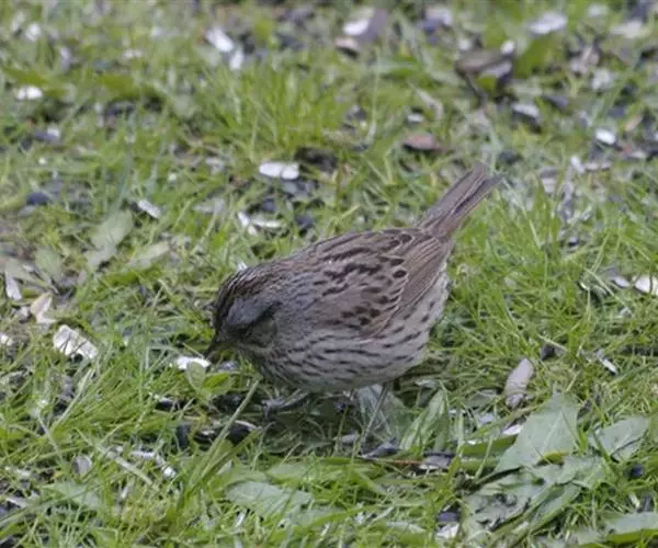林氏带鹀与歌带鹀(Song Sparrow)的区别:林氏带鹀尾更短,尾偏灰色,头部图案也不一样,棕色的面部具有清晰的带角的斑块。歌带鹀尾圆,尾部呈棕色;面部灰色,具贯眼纹。