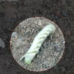 2.入盆前用瓦片在盆底的透水孔搭“人”字形,加上卵石,再加入营养土,使盆土低于盆口2cm,挖好5-7cm见方的穴。