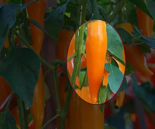 植物体高可达1米。叶卵状披针形,叶柄细长。花在枝下部常单生,在枝顶端由于节间极短缩而数朵花(可达8-10朵和数个叶一起呈簇生状),花梗细瘦,直立或斜升,花稍俯垂。果梗粗壮,直立,浆果指状或圆锥状,长4-10厘米,微弓曲,在梗上直立生,成熟后成红色,味很辣。