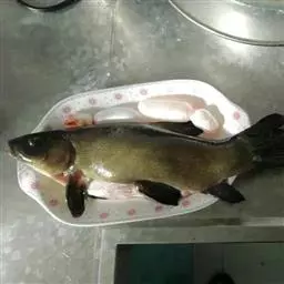 鲤科动物鲤鱼的肉。鲤鱼又称鲤拐子,有赤鲤、黄鲤、白鲤等品种。分布很广,我国黑龙江、黄河、长江、珠江、闽江诸流域及云南、新疆等湖泊,江河中均有。获得后,除去腮、鳞、肠杂,洗净鲜用。