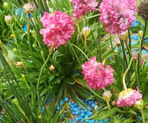 海石竹“罗裙”(Armeria maritime “Laucheana”)株高20厘米,鲜艳的粉红色花朵,花簇花期长。
